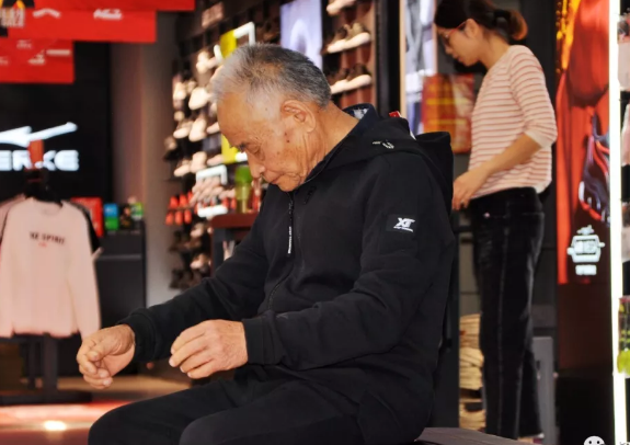 在营业员的帮助下,老人们终于挑选好了一身运动服,穿在老头子身上,看似比较合适,但老伴似乎还有点不太放心,她一边帮老头子拉上拉链,一边问道,褂子衣服合身吗。