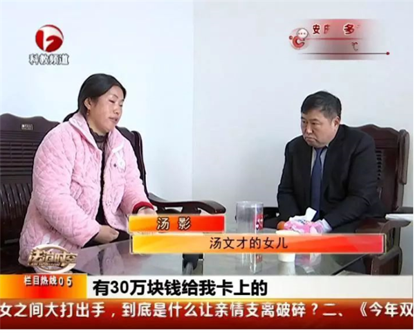 可是大儿子汤雷红认为,父亲并没有花这么多钱,是妹妹花了父亲的养老钱。汤雷红说,更让他生气是妹妹还把老俩口拆迁补偿的房子占为己有。